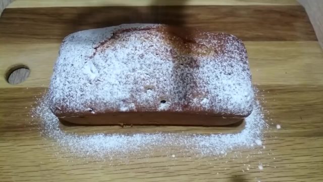 - Десерт се пече у рерни на температури од 160-170ºЦ током 50-60 минута. Производ се остави 10 минута да се одмори, а затим уклони из калупа и посипа шећером у праху.
