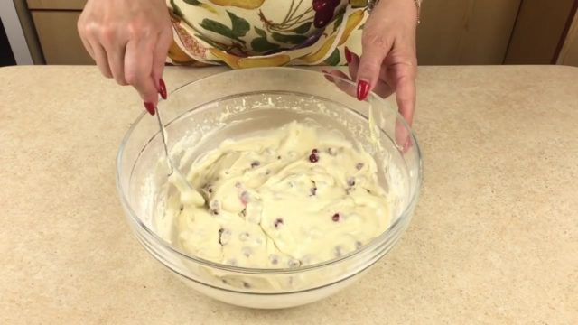 - Затим припремљене црвене или црне бобице треба сипати у тесто.