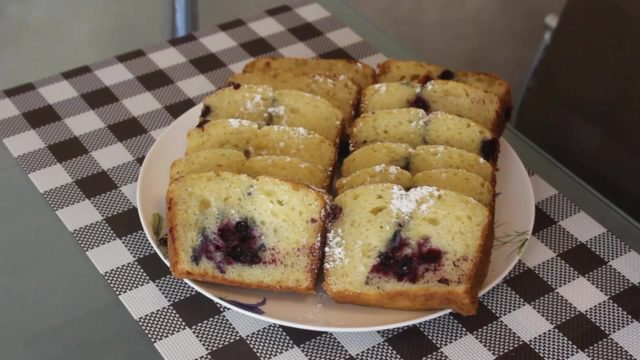- Бобица се дода у тесто, а смеша се положи у калуп подмазан маслацем или биљним уљем. Десерт се пече у рерни на 180ºЦ 40-50 минута. Након кувања, колач са рибизлом у силиконском калупу треба да одмара 10 минута, а затим поспите шећером у праху.